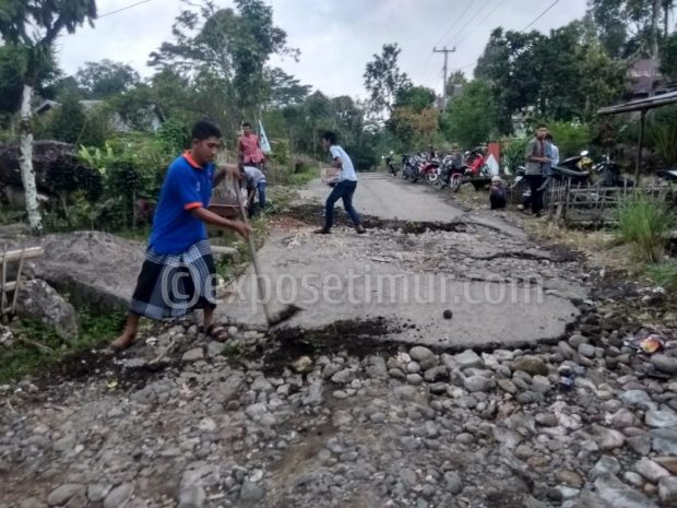 Salah satu anggota Laskar Muda Garuda, Asdar yang mengkoordinator pemuda Assipetunge menyampaikan dirinya bersama dengan belasan pemuda di Assipetunge setelah melaksanakan sholat Idul Fitri langsung bergerak melakukan pembersihan ” Kami hanyan bisa melakukan ini agar karena kami tidak punya apa-apa, kasian pengguna jalan yang lewat harus pelan-pelan, kadang juga ada kecelakaan” ucapnya kepada exposetimur.com