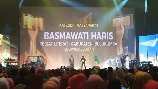 Bupati Bulukumba AM Sukri Sappewali yang mengikuti acara tersebut menyampaikan dukungan dan penghargaan dari Pemerintah Kabupaten Bulukumba atas dedikasi Basmawati di gerakan literasi melalui perpustakaan yang dirintisnya.