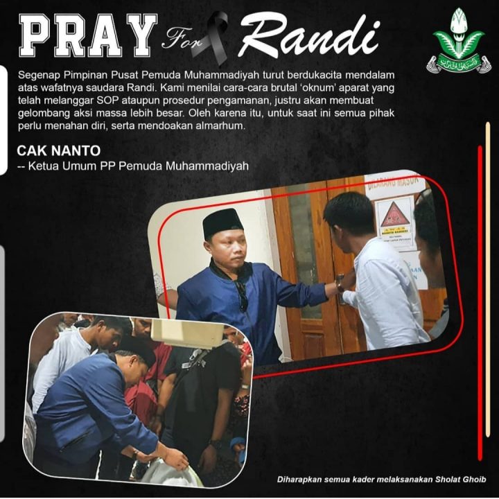 Karena itu, Mantan Kornas JPPR ini menegaskan, Pimpinan Pusat Pemuda Muhammadiyah, pertama-pertama turut berdukacita yang mendalam atas meninggalnya saudara Randi, kami menilai cara-cara brutal kepolisian tidak akan bisa meredam aksi, justru dapat memicu gelombang aksi yang lebih besar lagi. Kepolisian harusnya belajar dari sejarah.