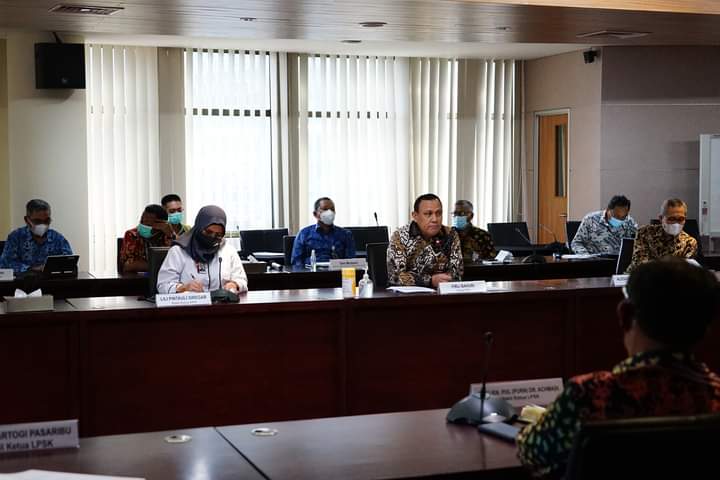 Jakarta, Exposetimur.com _ Pimpinan KPK Firli Bahuri, Alexander Marwata, dan Lili Pintauli Siregar beserta jajaran dari Kedeputian Penindakan dan Kedeputian Informasi dan Data menerima 7 pimpinan LPSK, di Gedung Merah Putih KPK, 13 April 2021.