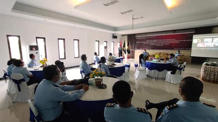 Sorong, Exposetimur.com – Kepala kantor Wilayah Kemenkumham Papua Barat Slamet Prihantara, Para Kepala Divisi bersama para Pejabat Administrator pengawas dan Tim Pokja Pembangunan Zona Integritas menuju WBK/WBBM Kanwil maupun pada jajaran Unit Pelaksana Teknis (UPT) yang diusulkan raih WBK/WBBM mengikuti kegiatan Entry Meeting Evaluasi Wilayah Bebas dari Korupsi dan Wilayah Birokrasi Bersih dan Melayani di Aula Kantor Imigrasi TPI Kelas II Sorong (19/04/2021) kemarin.