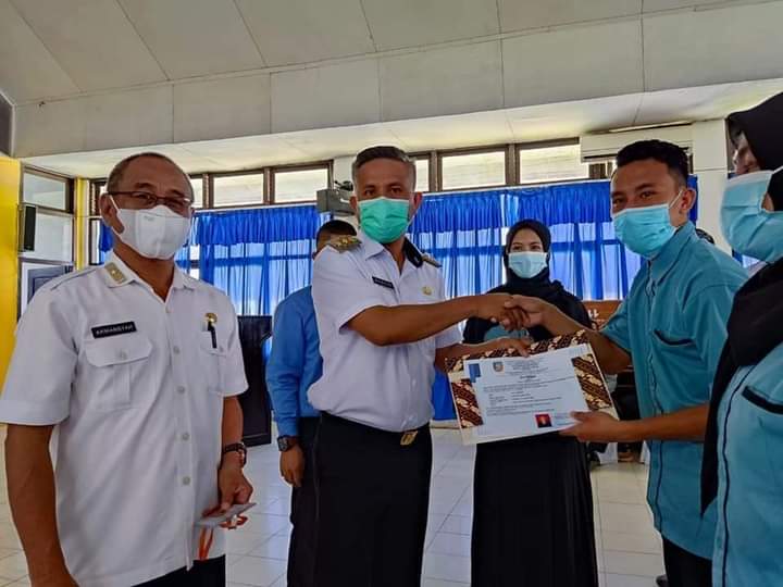 Konsel, Exposetimur.com _ Wakil Bupati Konawe Selatan Rasyid S.Sos M.Si didampingi Kadis Nakertrans Konsel Armansyah menutup pelatihan berbasis kompetensi non boarding tahap dua di aula BLK Konawe Selatan, Rabu (02/05/2021).