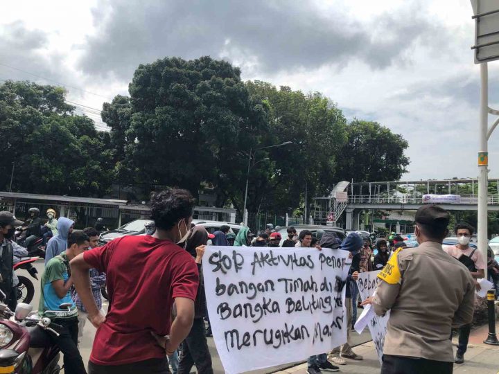 BANGKA BELITUNG, http://exposetimur.com _ Kesatuan Mahasiswa dan Pemuda Penjaga Indonesia menggelar aksi di Kantor PT. Timah dan Kementerian Lingkungan Hidup dan Kehutanan (KLHK) pada Kamis (25/11) terkait persoalan tambang timah di Teluk Belakat Dalam, Bangka Belitung.