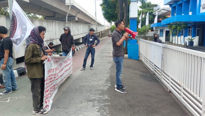 MAKASSAR, exposetimur.com | Aliansi Mahasiswa dan Pemuda Anti Korupsi yang terdiri dari 2 lembaga gerakan mahasiswa (FKMI dan FROJAM) kembali melakukan aksi unjuk rasa di depan kantor Direktorat Lalulintas (Ditlantas) Polda Sulsel, Jum’at, (22/4/22), siang tadi.