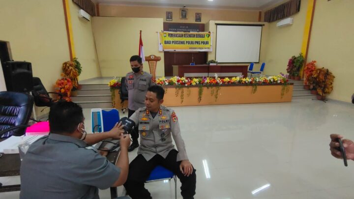 Bekerja sama dengan Tim Biddokkes Polda Sulawesi Selatan, Kepolisian Resort (Polres) Bantaeng melaksanakan pemeriksaan kesehatan (Rikkes) berkala bagi personil Polri / ASN Polri di Aula Dharmalaksana 99 Mapolres Bantaeng, Jalan Sungai Bialo Bantaeng Sulawesi Selatan.