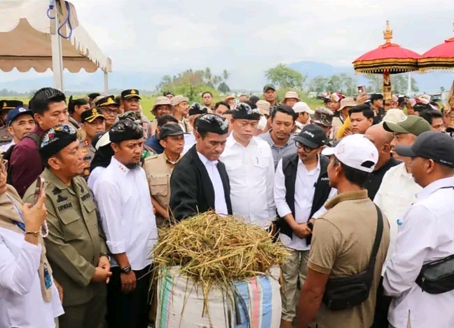 Setibanya, Mentan RI langsung menuju lokasi panen padi menggunakan kendaraan darat. Di Desa Margomulyo, ia menyaksikan panen raya yang dilakukan menggunakan mesin Combine Harvester, mencerminkan kemajuan teknologi pertanian di daerah tersebut.